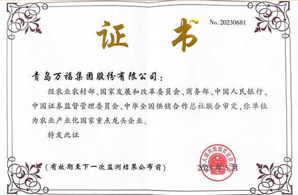 青島萬福集團股份有限公司成立于1983年,是以農副產品加工出口及國內銷售為主的農業產業化國家重點龍頭企業。截止2021年實現銷售收入57.23億元。主營業務主要有三大板塊,蔬菜的種植加工出口、生豬養殖以及屠宰加工銷售、調理食品加工銷售。公司產品主要包括蔬菜制品、肉類食品、調理食品三大系列300多個品種,產品銷往全國各地,進出口業務遍布日本、歐洲、中東、港澳等十幾個國家和地區。